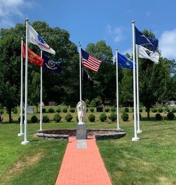 Veterans Memorial Way consists of a brick walkway with a cross in the center. An angel statue will sit in the middle. Encircling the area is an American flag, as well as the flags of the Army, Navy, Air Force Marine Corps, Coast Guard, and Merchant Marines.