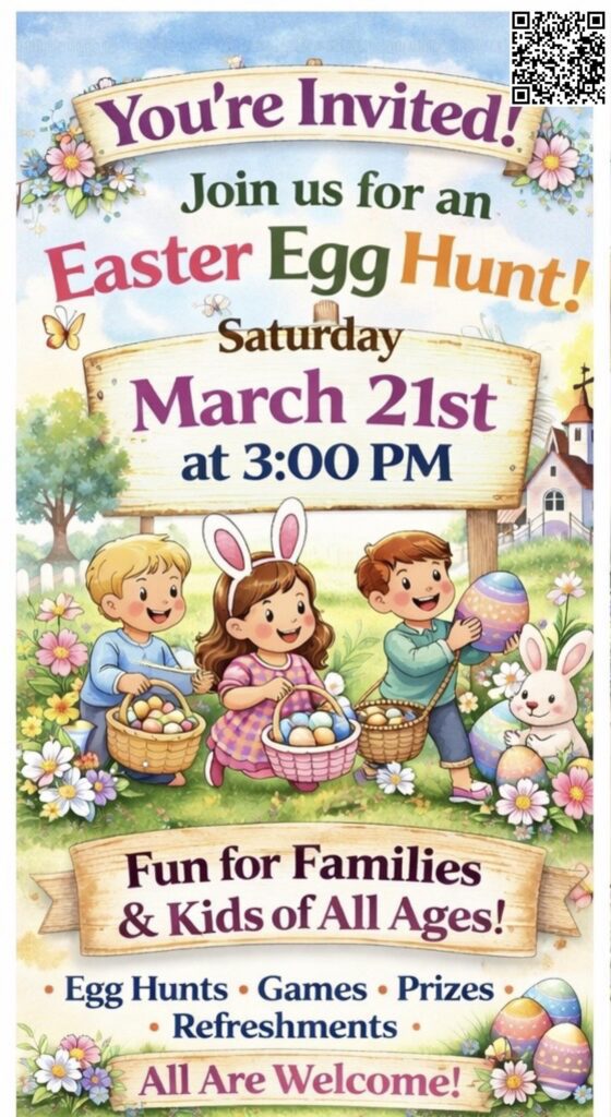 Join us for our Annual Easter Egg Hunt on March 21st, and Children’s Stations of the Cross followed by the Lenten Pasta Dinner on March 27.