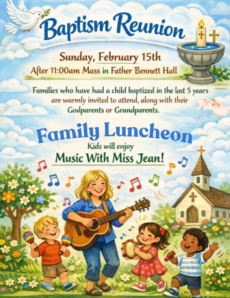 St. Ann’s Baptism Reunion on Sunday, February 15th following the 11am Mass. Register For Nurturing Seedlings
