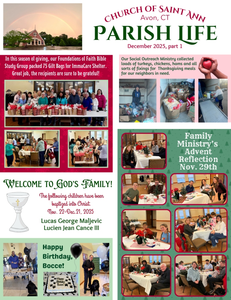 Life at Saint Ann is filled with faith, friendship, and joy! Here’s a glimpse of the moments that bring our parish family together throughout the year. If you are not a parishioner and would like to join us, please click here.