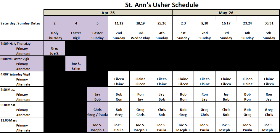 - Gifts to be brought up after 1st collection, but before 2nd collection when there is a 2nd